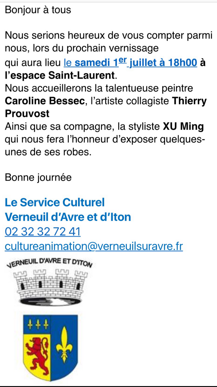 Exposition à Verneuil sur Avre (27) du 1er au 23 Juillet 2017